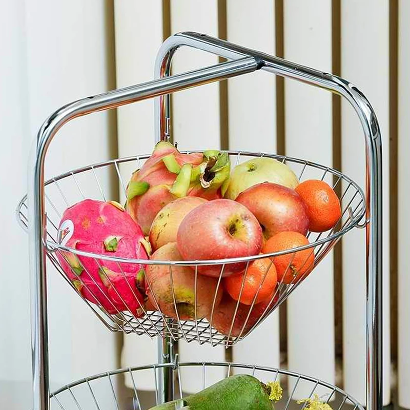3 Tier Metal Fruit Storage Basket Rolling Storage Rack Kitchen