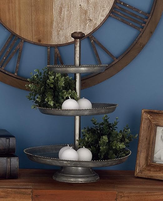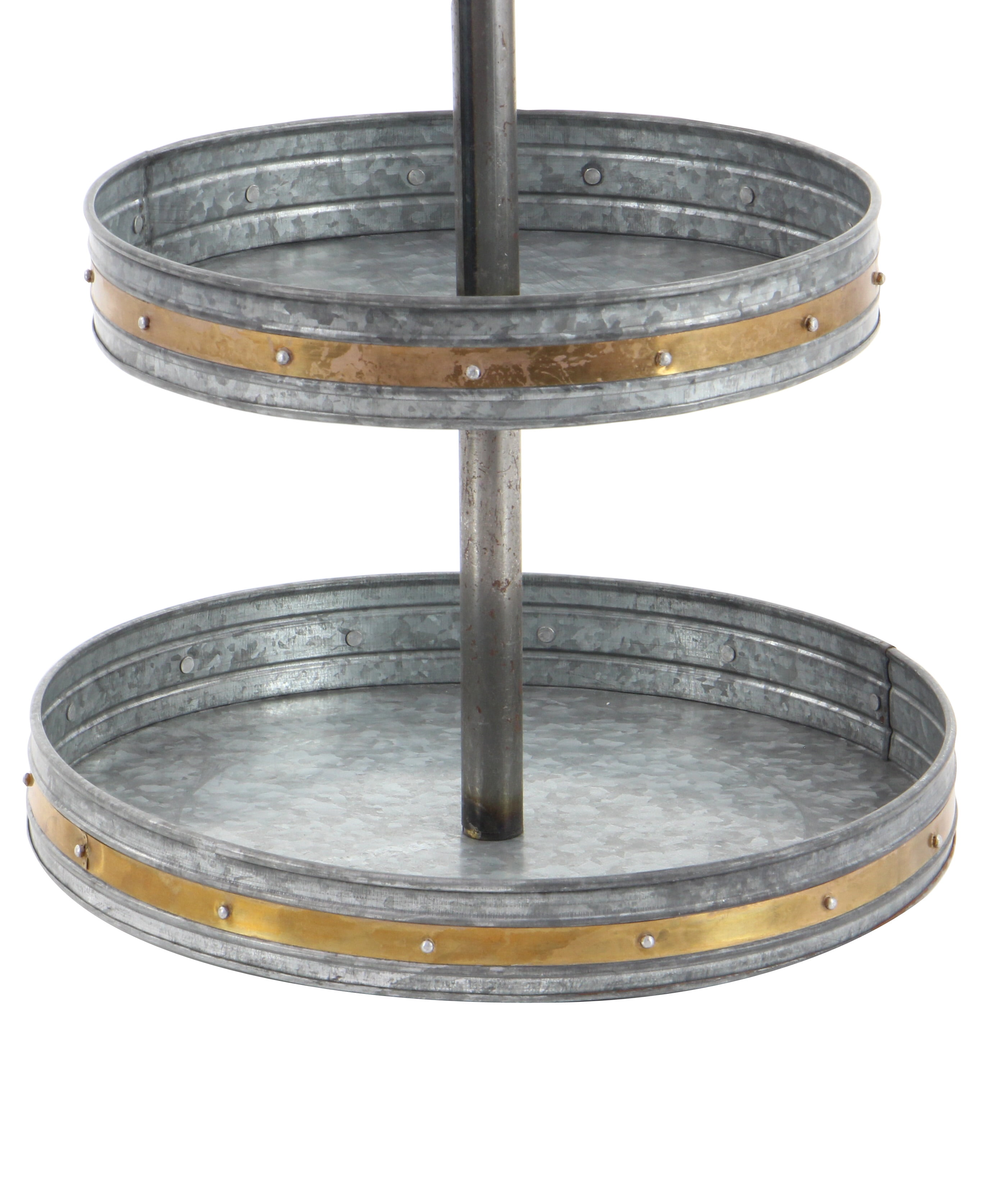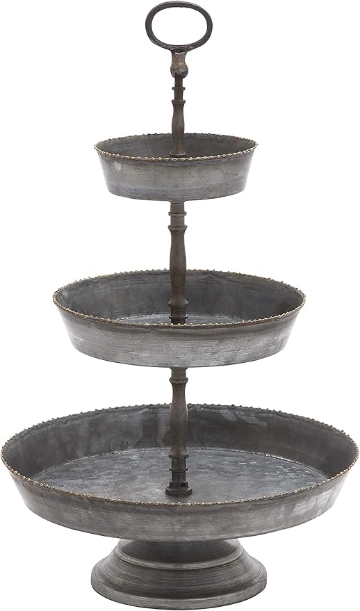 Deco 79 Farmhouse 3 Tiered Round Metal Tray Stand Galvanized Gray