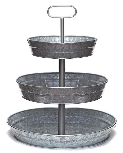Amazon Com 3 Tier Serving Tray Galvanized Rustic Metal Stand