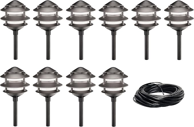 10 Pack Malibu 3 Tier Cast Metal Pathway Yard Lights 11 Watt In