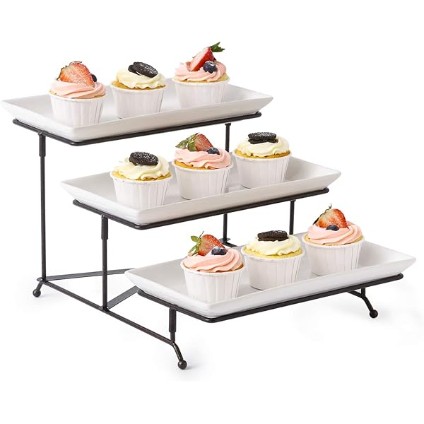 3 Tier Rectangular Serving Platter Three Tiered Cake Tray Stand