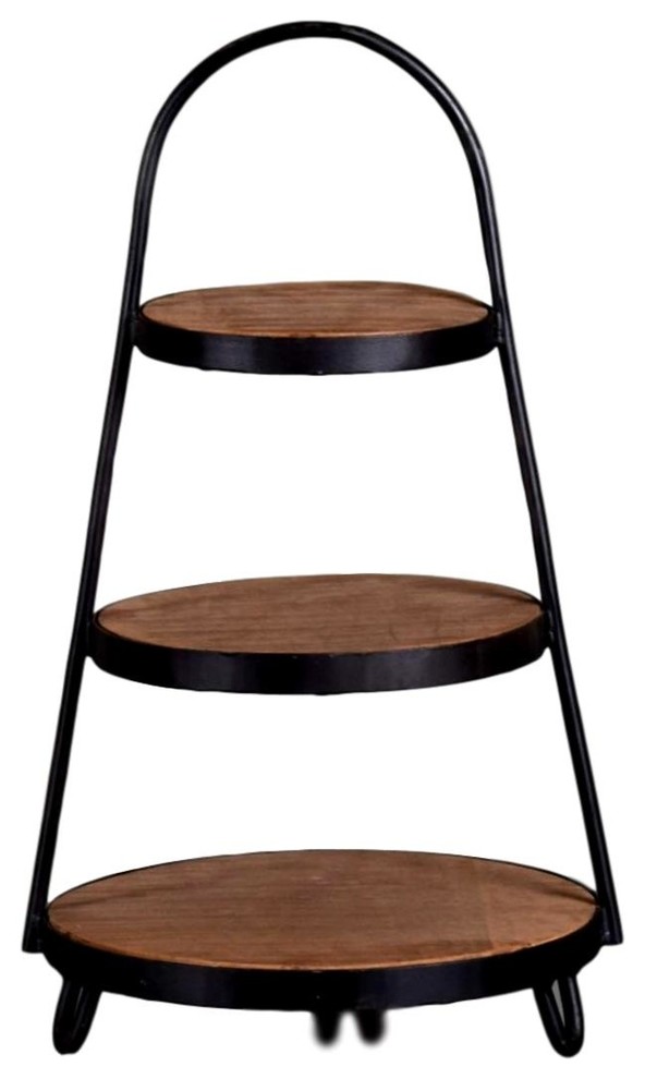 Rustic Wood Iron 3 Tier Cake Stand Cupcake Serving Minimalist