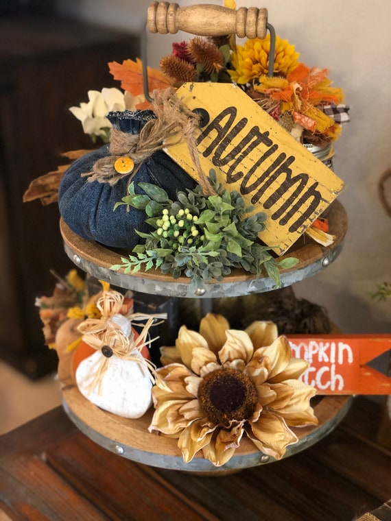 Fall Tray Decorcenterpieces 3 Tier Tray Decor Tiered Tray Etsy