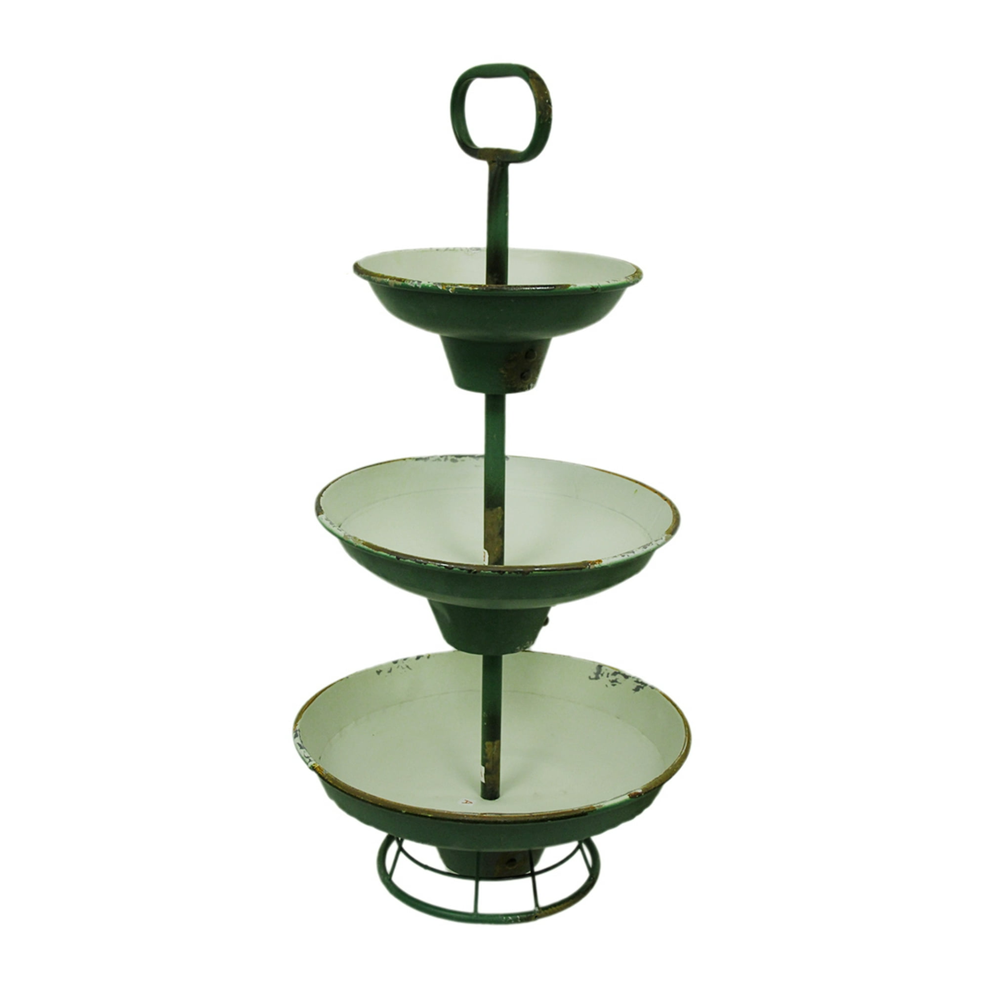 Shop Green And White Rustic Metal 3 Tier Tray Stand Overstock