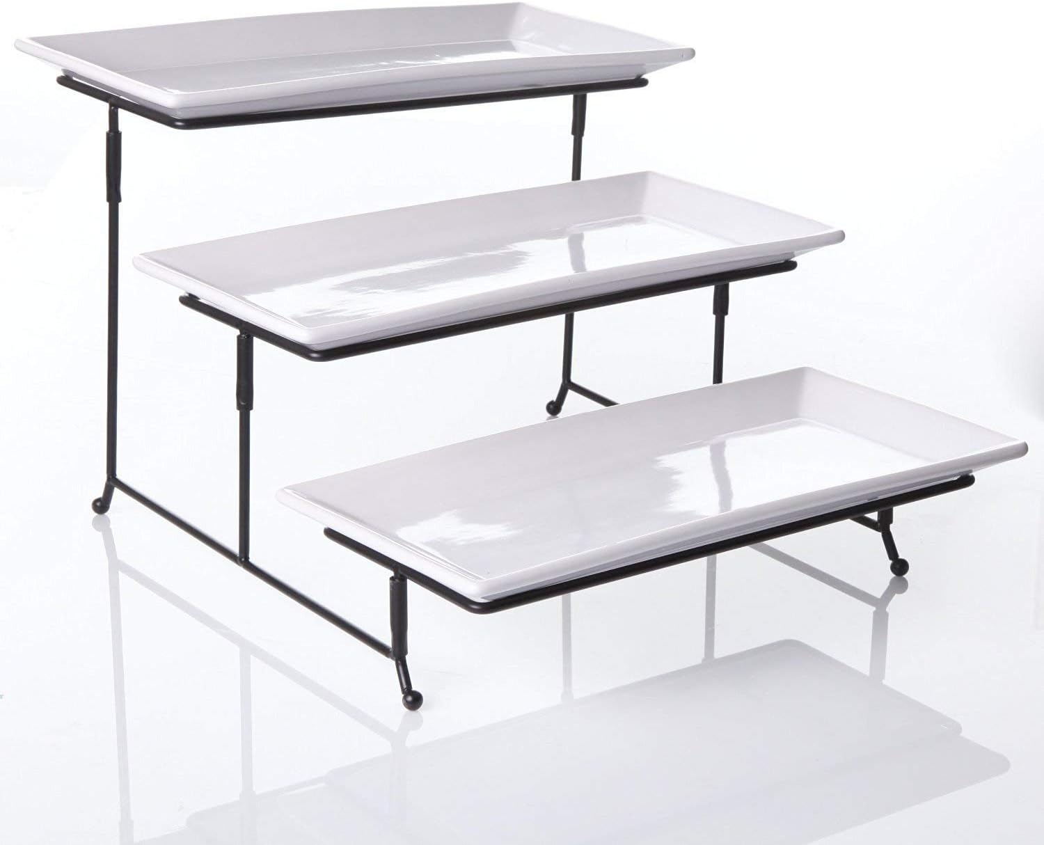 3 Tier Oblong Ceramic Server White Tray Platters Collapsible Stand