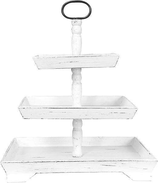 3 Tiered Serving Tray White Painted Kitchen Stand Home Decor
