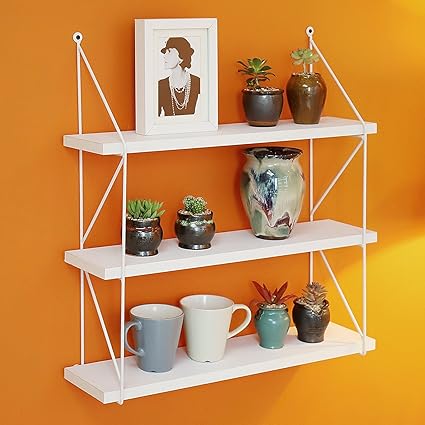 Amazon Com 3 Tier Wall Hanging Shelf Wood Hanging Shelves For