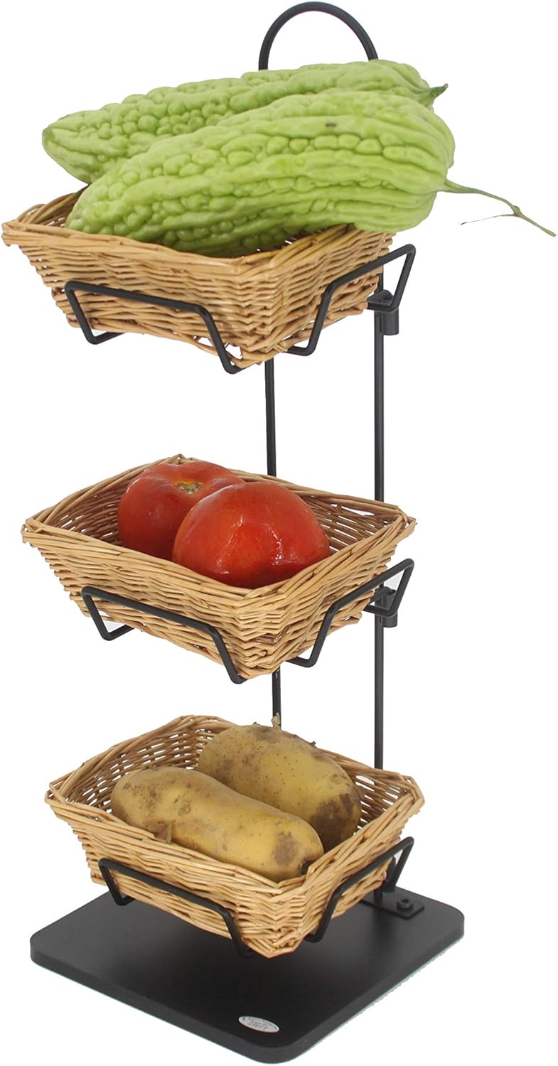 3 Tier Fruit Basket Stand Tier Wicker Basket Kitchen Fruit