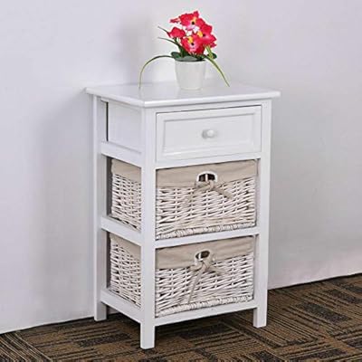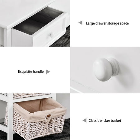 White Night Stand 3 Tiers 1 Drawer Bedside End Table Organizer