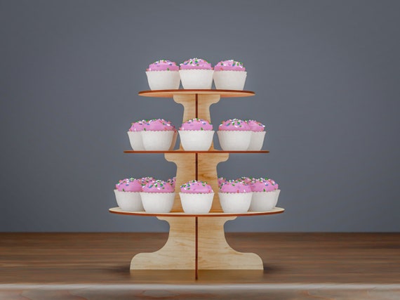 3 Tier Cupcake Stand Round Wood Cupcake Display Cupcake Etsy