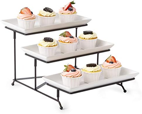3 Tier Serving Stand Collapsible Sturdier Rack With 3 Porcelain