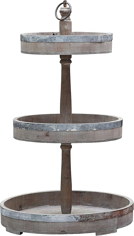 3r Studios Bungalow Lane Brown Wooden 3 Tier Round Decorative Tray Df0228 The Home Depot