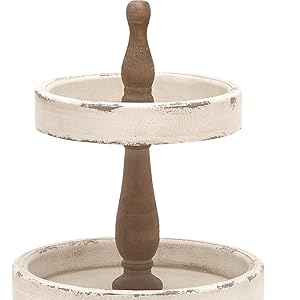 Metal And Wood 3 Tier Round Tray Stand Antique Farmhouse