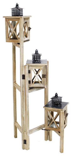 42 3 Piece Wooden Candle Lanterns Set 3 Tier Rotating And