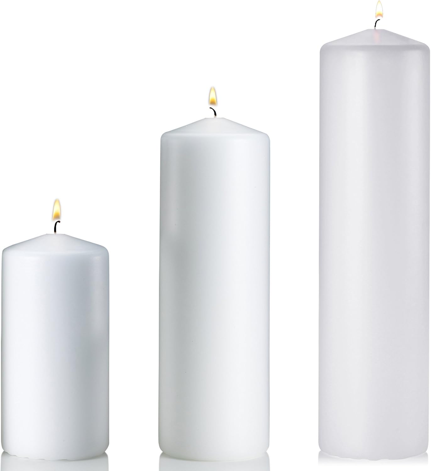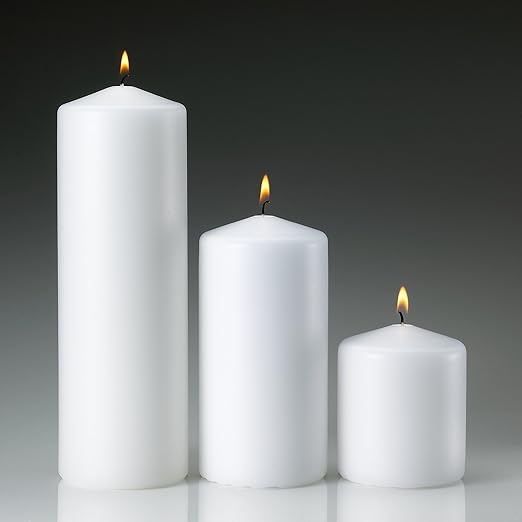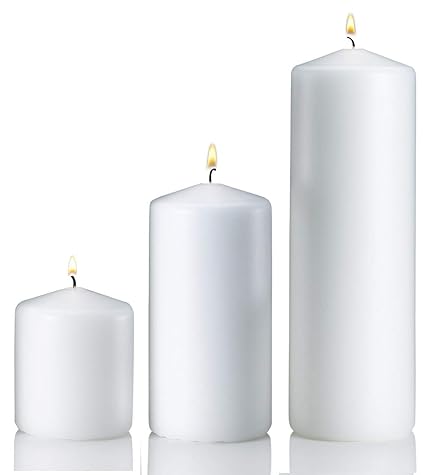 Amazon Com Set Of 3 White Pillar Candles 3x3 3x6 3x9 Made In Usa Home Kitchen