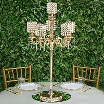 Amazon Com Balsacircle Set Of 1 56 Inch And 36 Inch Tall Gold Candelabra Candle Holder Centerpiece Crystal Chains Wedding Decorations Supplies Home Kitchen