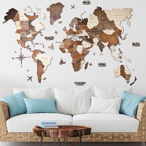 The Best Sales For 3d Wood World Map Wall Art Large Wall Decor World Travel Map All Sizes M L Xl Xxl Any Occasion Gift Idea Wall Art For Home Kitchen Or