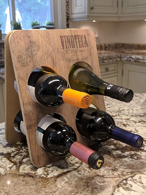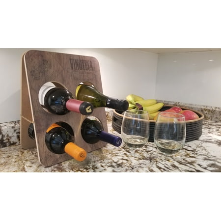Vinoteca Countertop Wine Rack Brown Small 4 Bottle Wine Holder