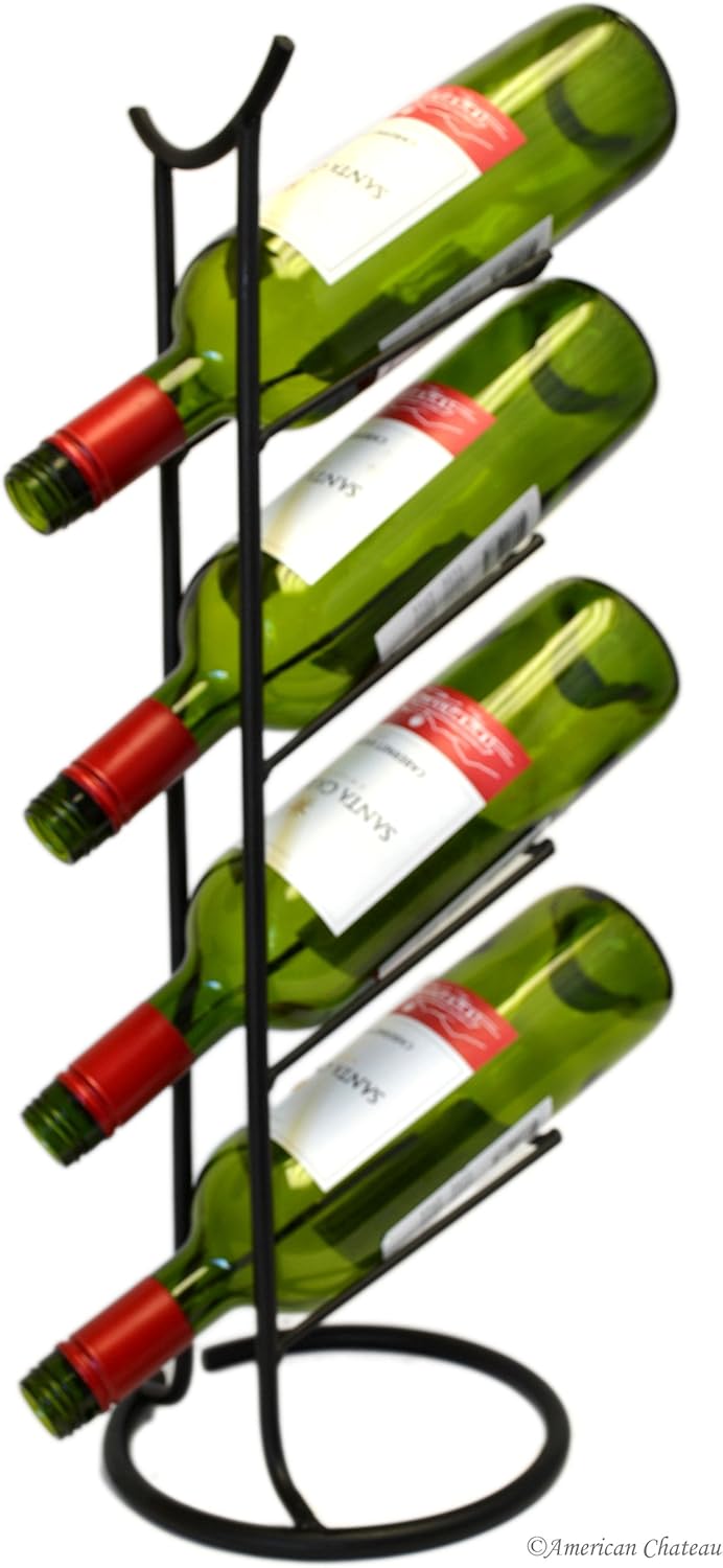 4 Bottle Wine Rack Black Metal Wire Storage Counter Top Holder