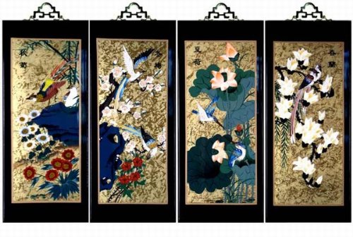 Lot 10 Stunning Four Panel 4 Seasons Asian Black Lacquer Wall