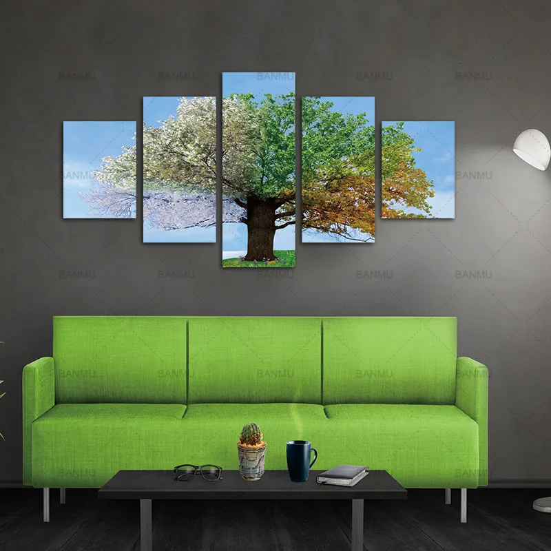 Piece Four Seasons Tree Wall Art Decoration Canvas Painting For