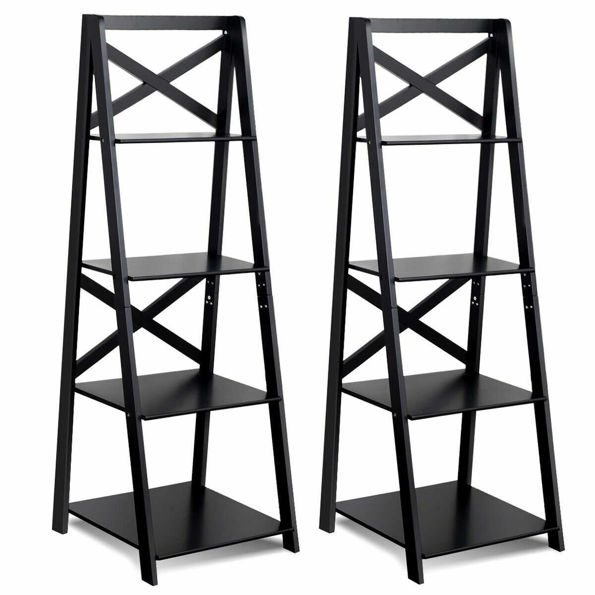 Wooden 2pcs 4 Tier Bookshelf Industrial Ladder Shelf Modern