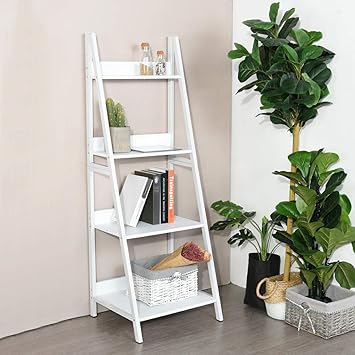 Homfa Ladder Shelf Standing Shelf Unit 4 Tier Bookshelf Display