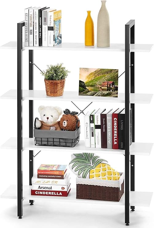 Jazi Shelves Shelving 4 Tier Bookcase White Ladder Shelf Unit