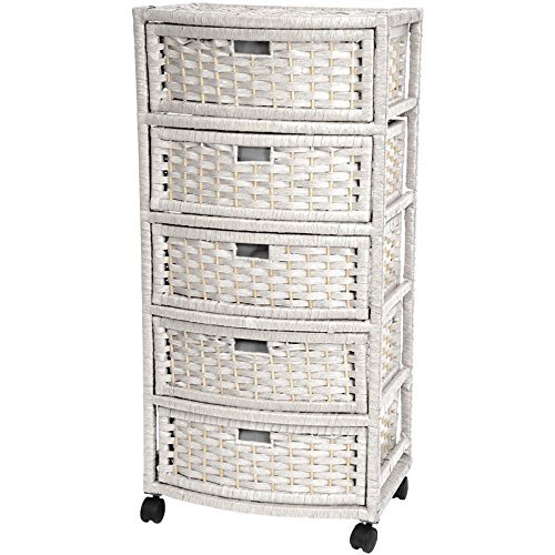 Oriental Furniture 5 Drawer White Wheeled Natural Fiber Storage