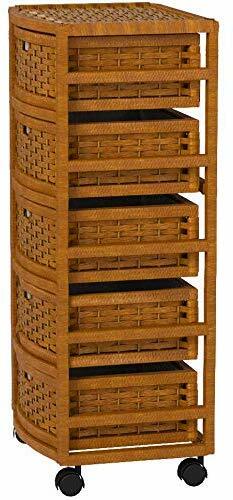 5 Drawer Wicker Rattan Storage Rack In Rustic Brown Rattan