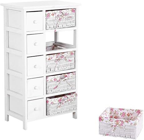 Mecor Bedside Cabinet White 5 Layer Chest Of Drawers With Wicker