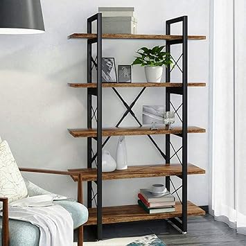 Amazon Com Bookshelf 5 Tier Bookcase Vintage Industrial Rustic