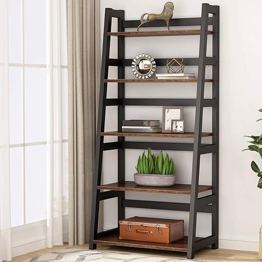 Ladder Shelves Book Shelf 5 Tier Bookcase Industrial Storage