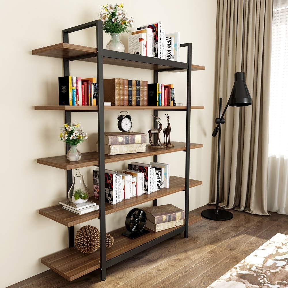 Amazon Com Tribesigns 5 Tier Bookshelf Industrial Bookcase 5