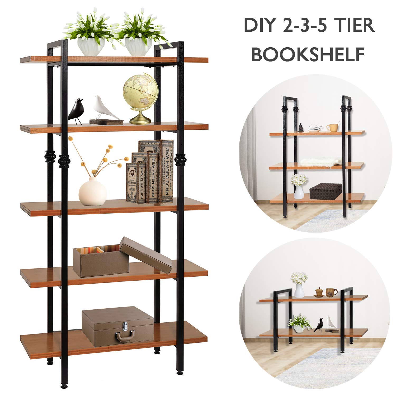 Amazon Com Tangkula 5 Tier Bookcase Rustic Industrial Bookshelf