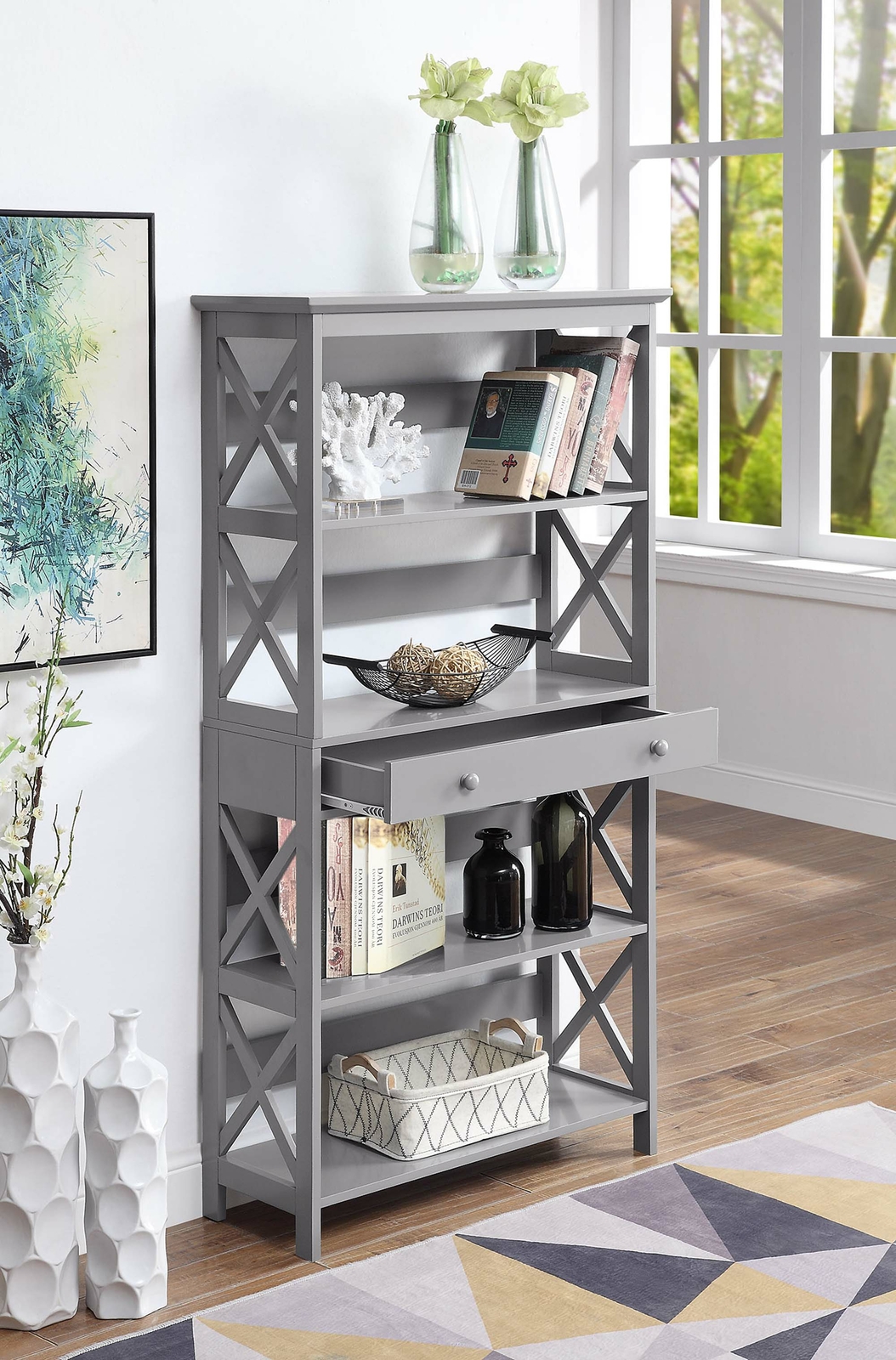 Convenience Concepts 203051gy Oxford 5 Tier Bookcase With Drawer