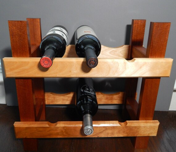Mahogany Wine Rack Rustic Handmade Custom Wood 6 Bottle Wine Etsy