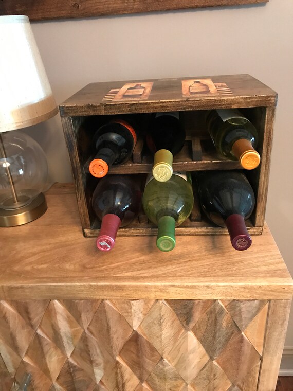 Rustic Wood Wine Crate 6 Bottle Wine Rack Holder With Wine Etsy