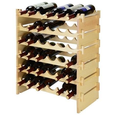 36 Bottles Wine Rack Free Standing Solid Natural Wood Wine Holder
