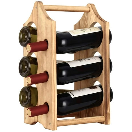 Wine Rack 6 Bottles Rustic Wood Wine Bottle Holder Free Standing