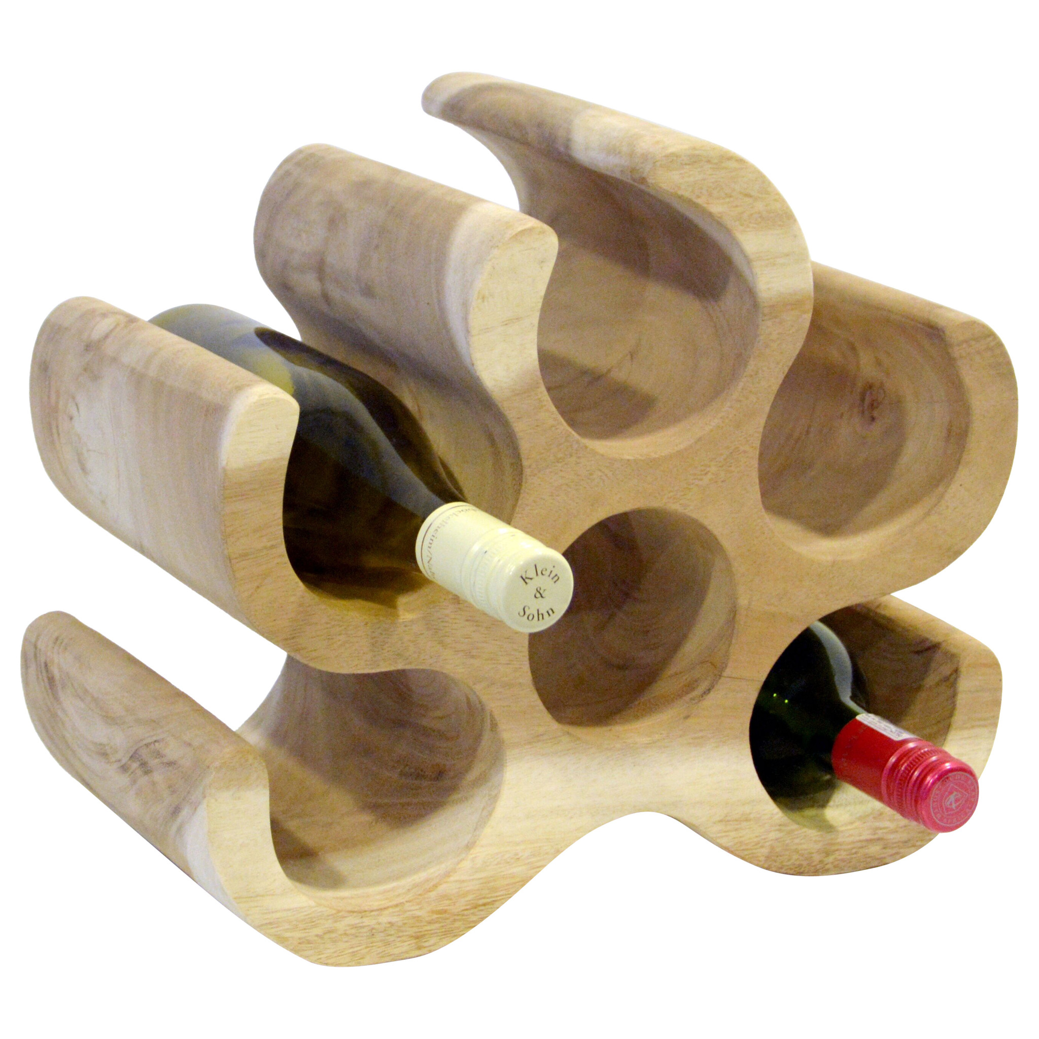 Brever 6 Bottle Wooden Wave Wine Rack Freestanding For Table