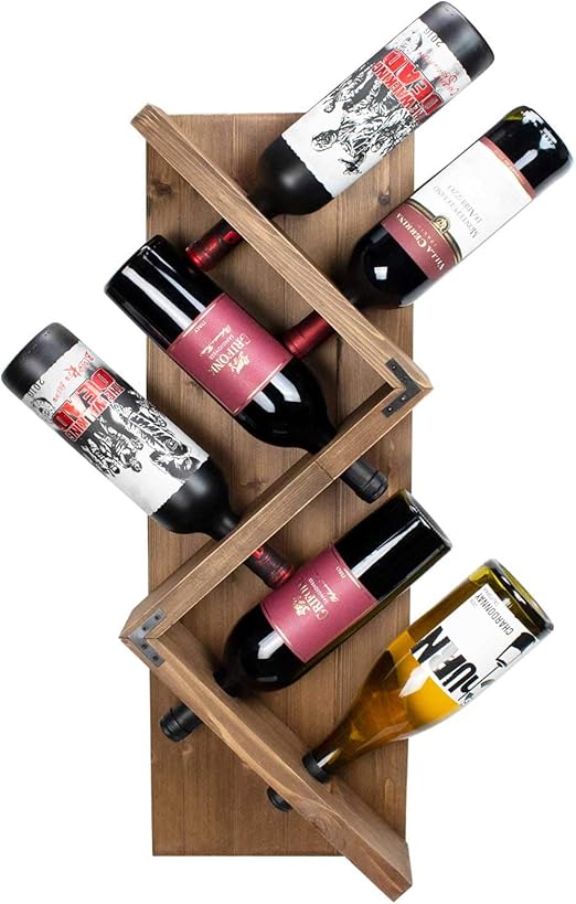 6 Glass Bottle Wall Mounted Rustic Wooden Wine Rack Wine Lovers