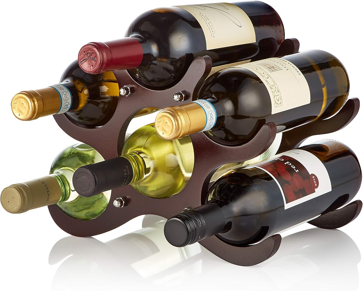 Rta Wooden Spoke 6 Bottle Wine Rack Freestanding Wine Bottle