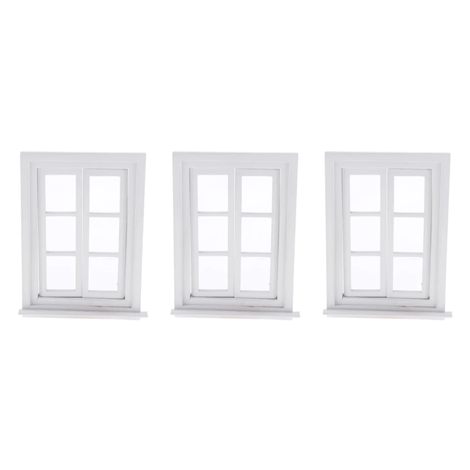 3pcs 1 12 Scale Dollhouse Miniature White Wooden 6 Pane Window