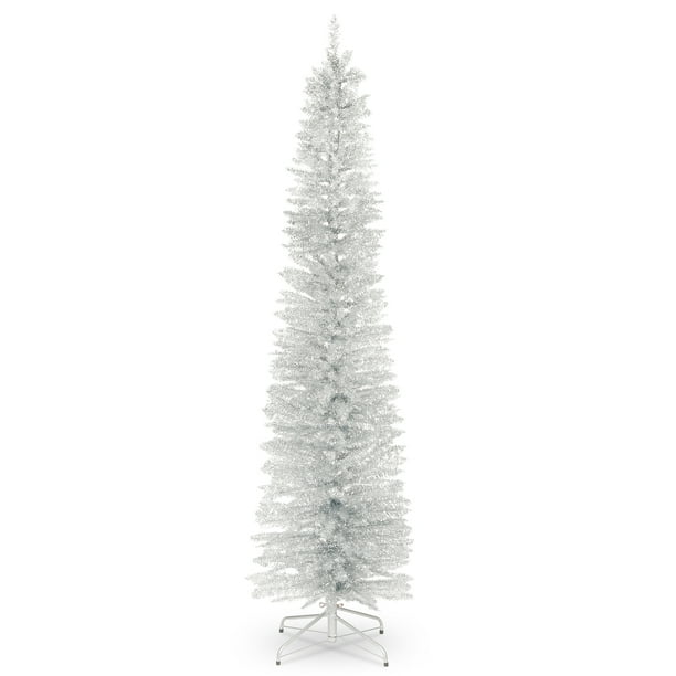Amazing Savings On 7 Pencil Silver Tinsel Artificial Christmas Tree Unlit 7 Foot