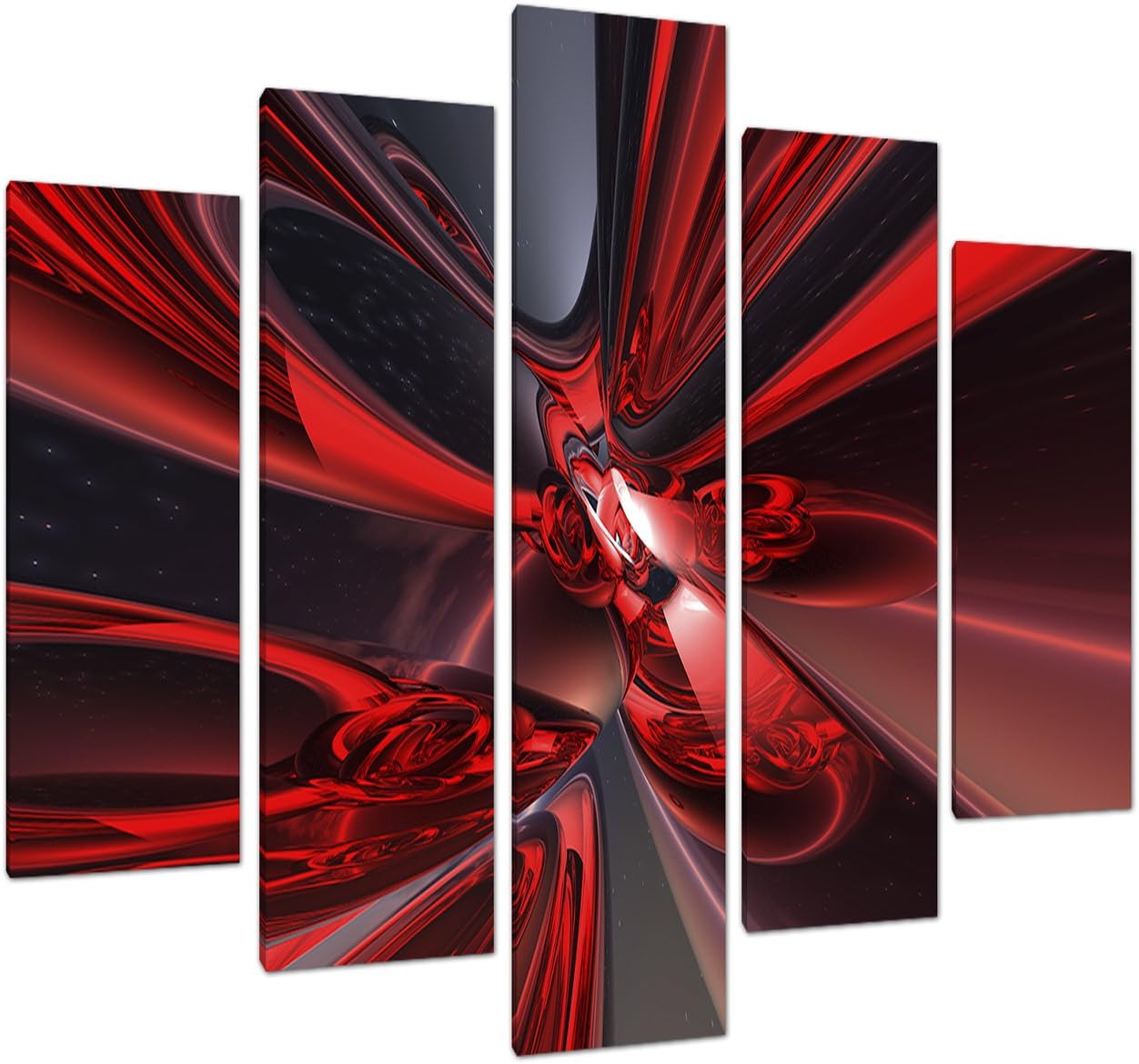 5 Piece Abstract Canvas Art Pictures Large Modern Red Wall Prints