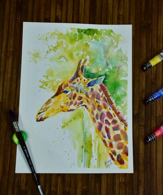 Abstract Giraffe Watercolor Painting Original Artwork Etsy