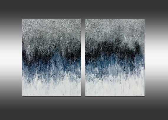 Mixed Media Glitter Art Abstract Canvas Diptych Painting Etsy