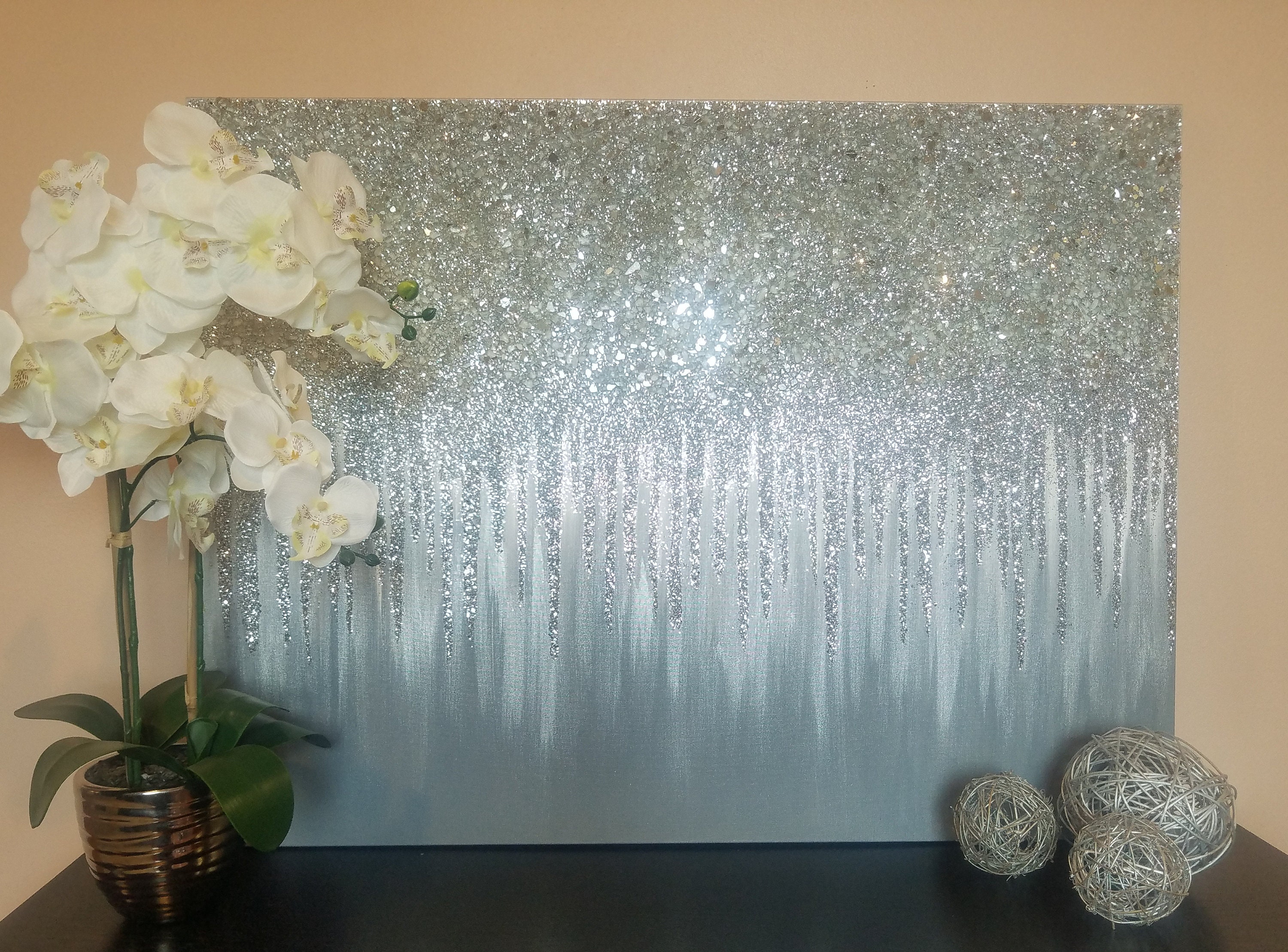 Glitter Painting Silver Glitter Painting Silver Glitter Art Etsy