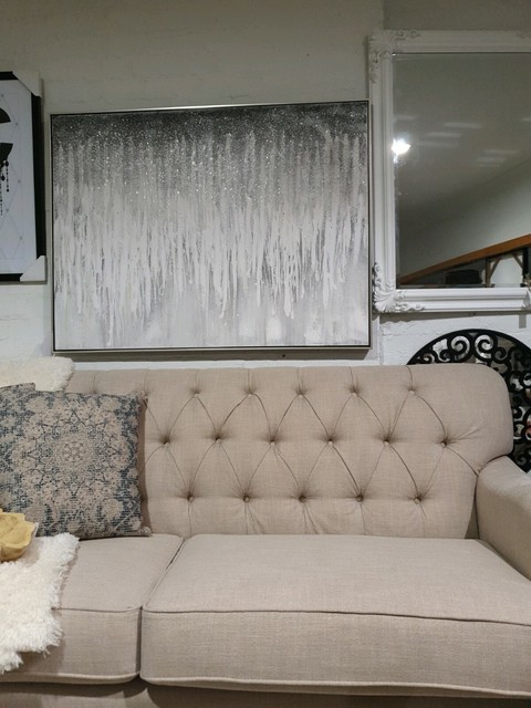 Abstract Glitter Painting Custom Modern Chic Home Decor Silver